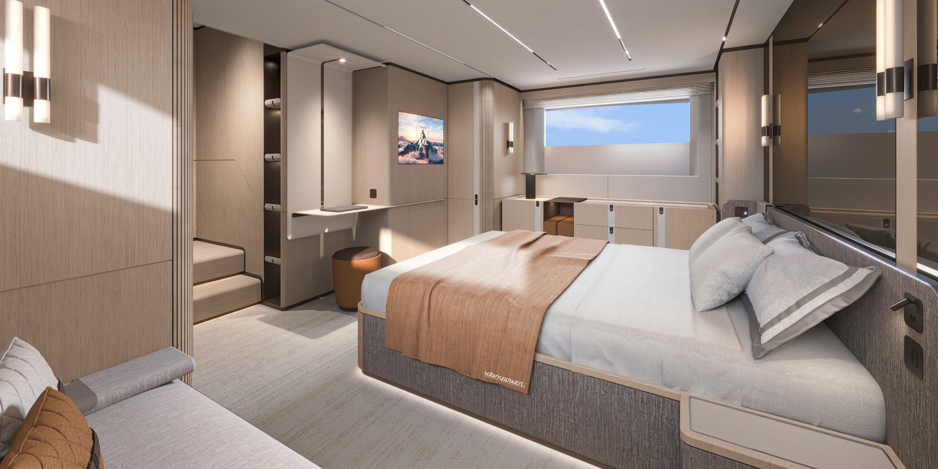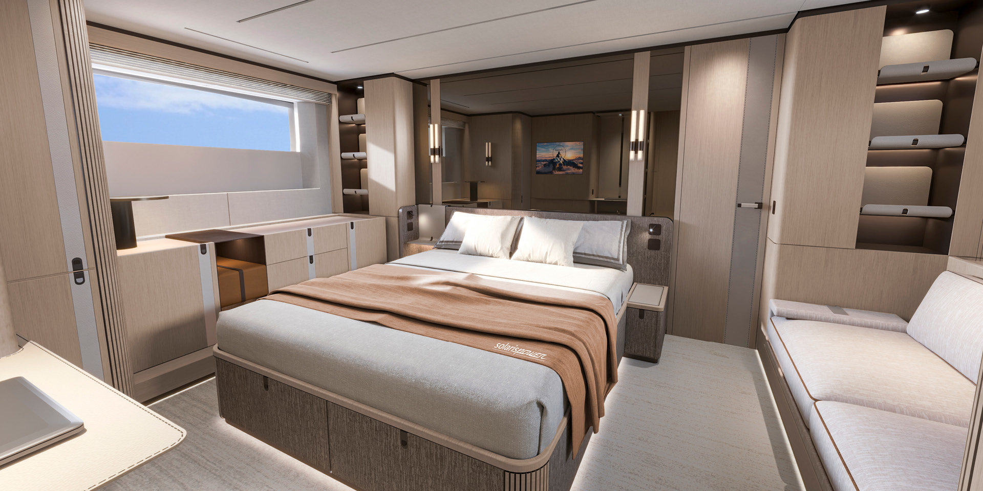 Alongside the outstanding seaworthiness, performance at sea, comfort and safety that distinguish every Solaris Power yacht, the new 64 Long Range offers best-in-class space and comfort both inside and out. Generous volumes, carefully designed layouts and refined detailing create an environment where functionality and seagoing comfort meet elegance, delivering a unique and unmistakable character in every setting.