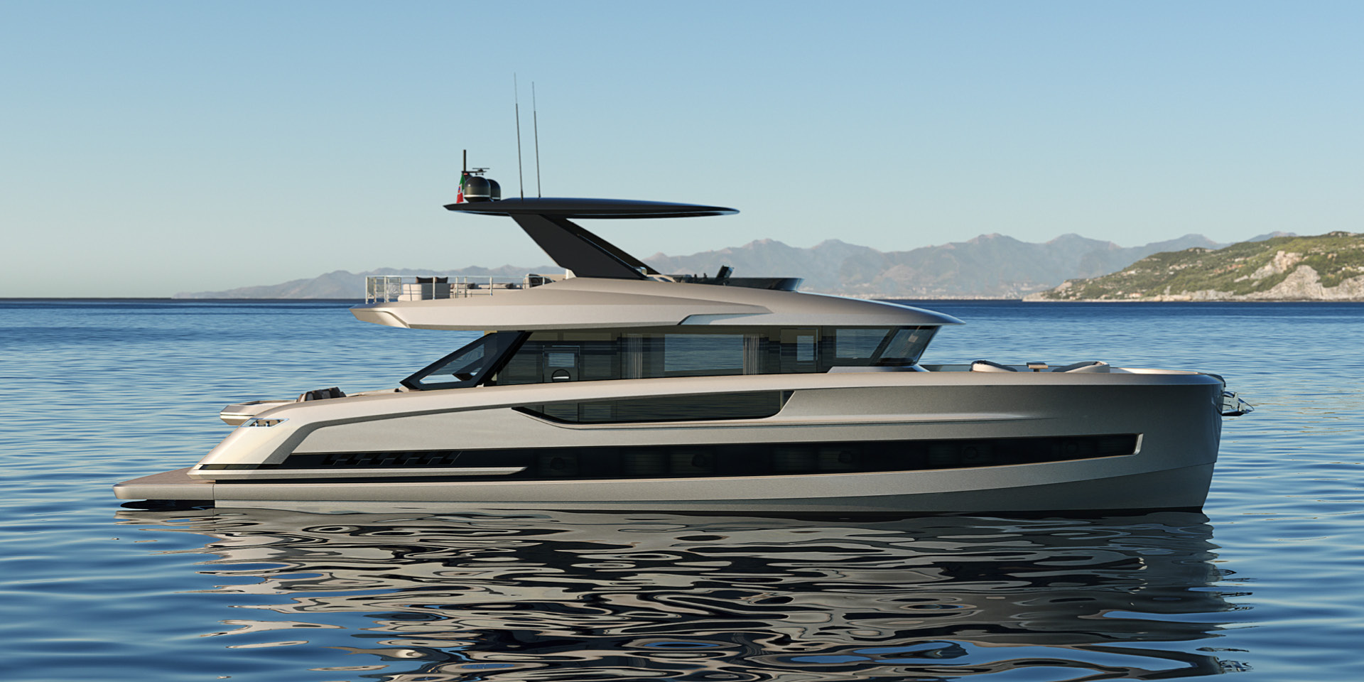 The hull shape guarantees safety, great stability and comfort when cruising and at anchor, without the need for stabilizers.