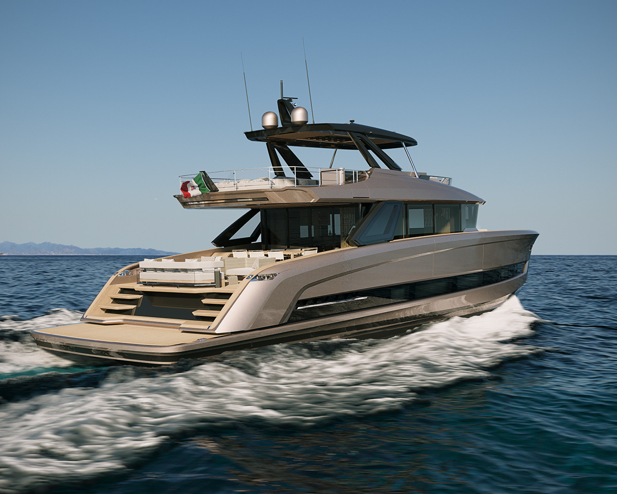 Los volúmenes interiores superan a los de cualquier otro 70 pies: incluyen una gran cocina, un sofá de 3,20 m de ancho, un televisor y muchos armarios de estiba.